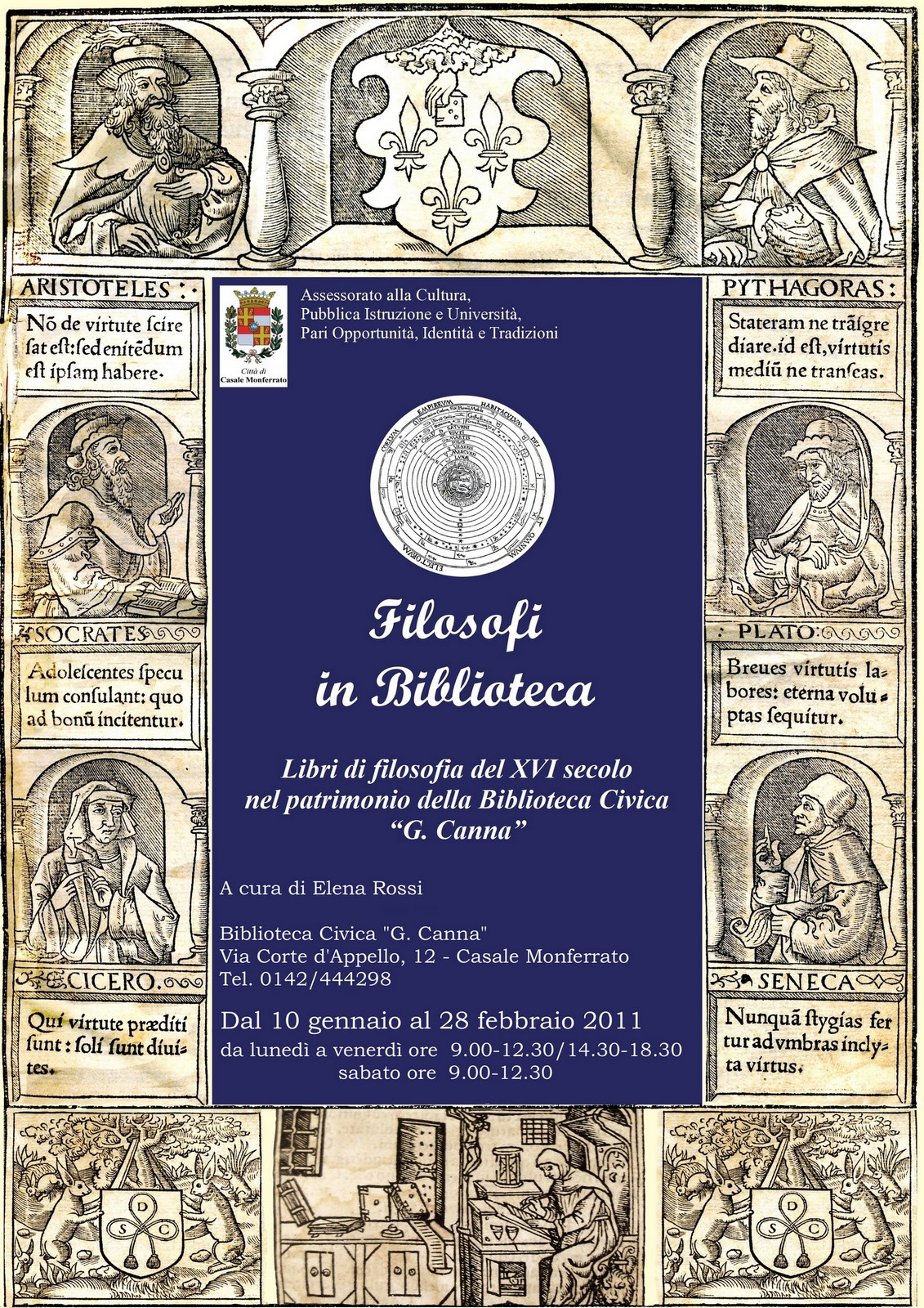 Libri di filosofia del XVI secolo nel patrimonio della Biblioteca Civica "G. Canna". Da lunedì 10 gennaio a lunedì 28 febbraio una mostra darà la possibilità di vedere rare cinquecentine.